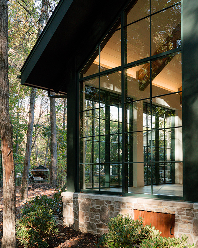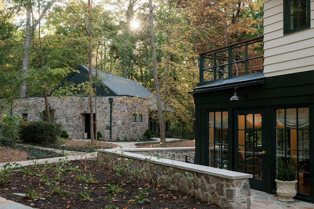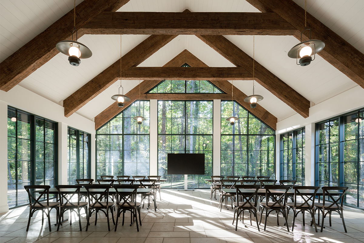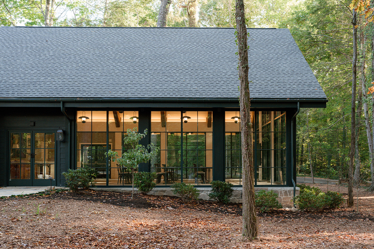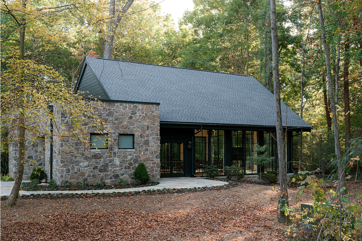 Nestled among the quiet woods of Maryville, the Meeting House at RT Lodge offers guests a serene retreat for gatherings, meetings, and corporate events. Designed to complement the Lodge’s natural beauty, the building features a multi-purpose meeting room framed by tranquil woodland views, along with private restrooms, a custom snack and beverage station, and a warming kitchen with service area for added convenience. Thoughtfully sited to blend with the landscape, the structure opens the viewshed to the forest while maintaining a sense of intimacy and calm. A simple palette of materials – including natural stone, warm lap siding, and expansive glass – creates harmony between the building and its surroundings. Inside, designed in collaboration with Norris Studio, rustic wood beams, soft accent lighting, and stone-look pavers set a welcoming tone. Padded wall coverings provide both acoustic comfort and a sense of quiet sophistication, making the Meeting House a true extension of RT Lodge’s refined yet relaxed atmosphere. <strong>A Place with Deep Roots</strong> Originally built in 1932 as Morningside, the home of Susan Wiley Cooper Walker, the property became part of Maryville College and later evolved into a beloved inn and event venue. Ruby Tuesday, Inc. partnered with the College to transform it into RT Lodge, a retreat for dining, hospitality, and celebration. Johnson Architecture has been part of that story since 1998 – designing the Lodge’s early renovations and guest houses, restaurant expansion and now, the Meeting House, a natural next chapter in its legacy of welcoming spaces.