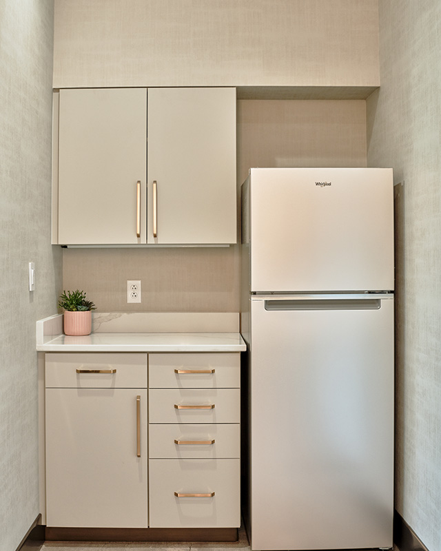 JAI partnered with Stellar Medical Aesthetics to transform a tenant suite into a refined, modern environment that supports its expanding med-spa practice. The renovation reimagines the existing space to include a welcoming lobby, patient lounge, administrative office, and six state-of-the-art treatment rooms, each designed to balance functionality with an elevated client experience. The design emphasizes clean lines, soft lighting, and thoughtful detailing. The reception area creates a striking first impression, with a dramatic quartz-clad wall and skincare offerings on custom millwork shelving that is illuminated by graceful archway lighting. Each treatment room features custom casework tailored to the practice’s workflow and aesthetic preferences.